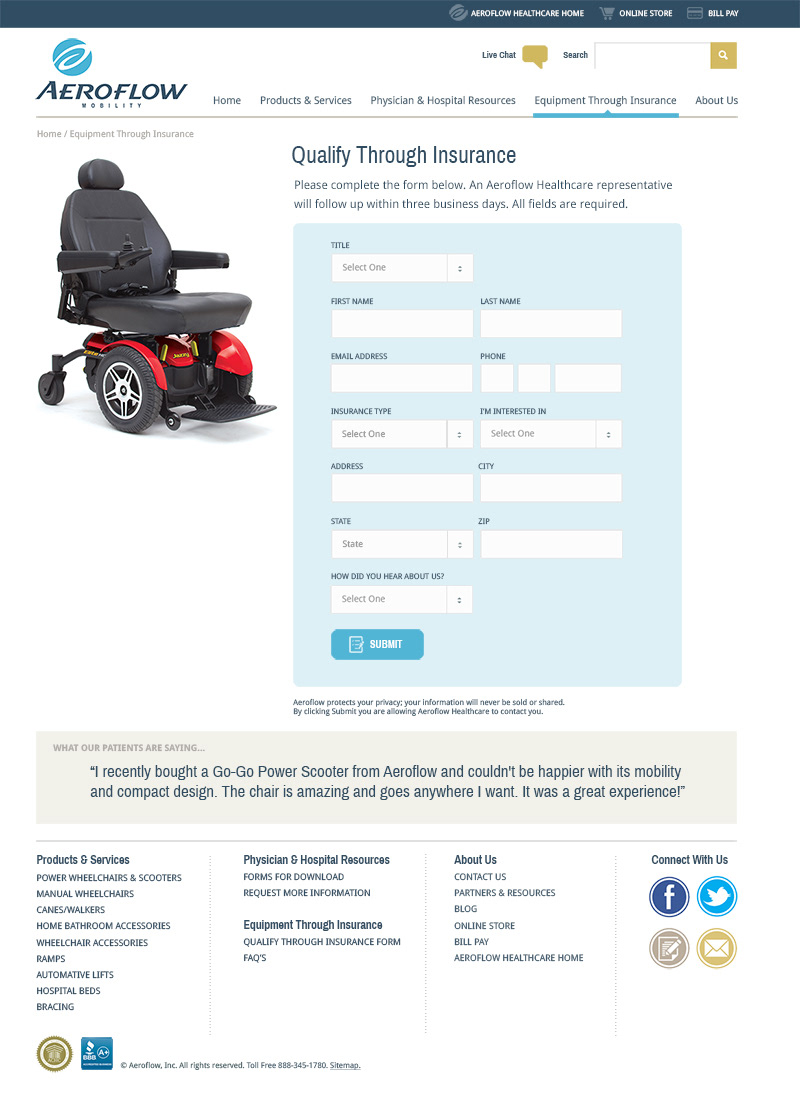Art direction, design, and project management for Aeroflow Healthcare's mobility division.