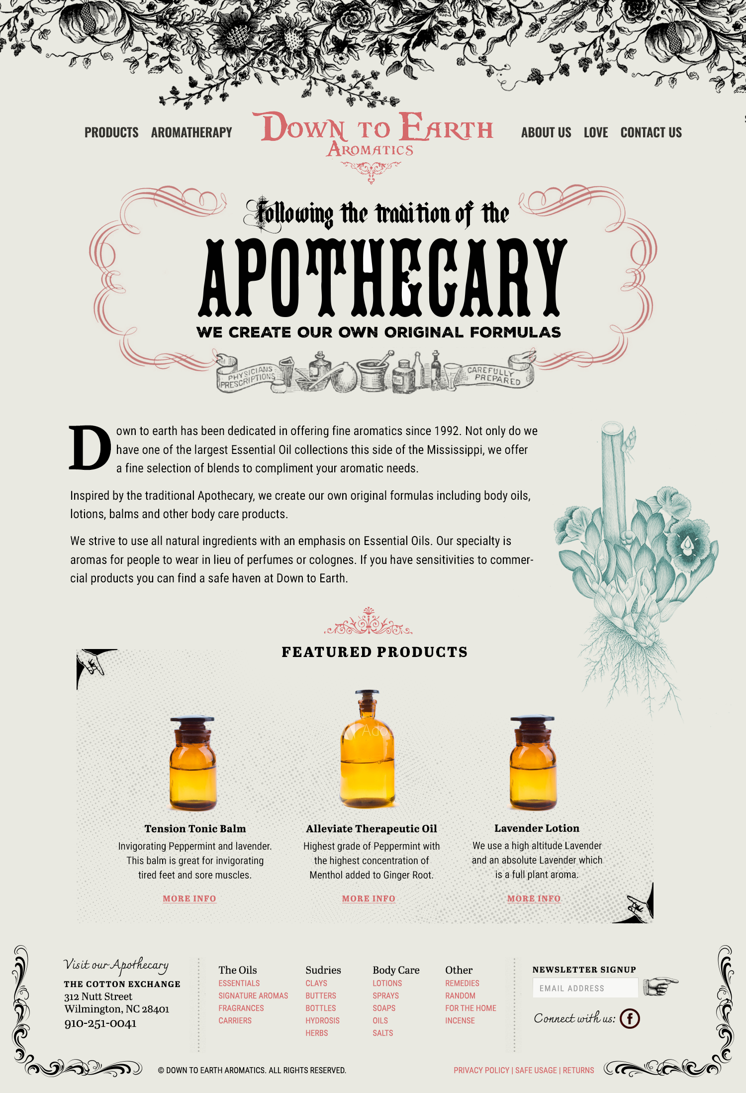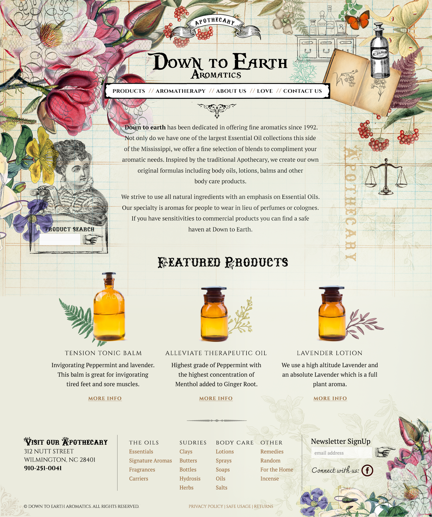 Website Concepts for Down to Earth Aromatics. Designs created and owned by Rebeca Bing. (client supplied logo)