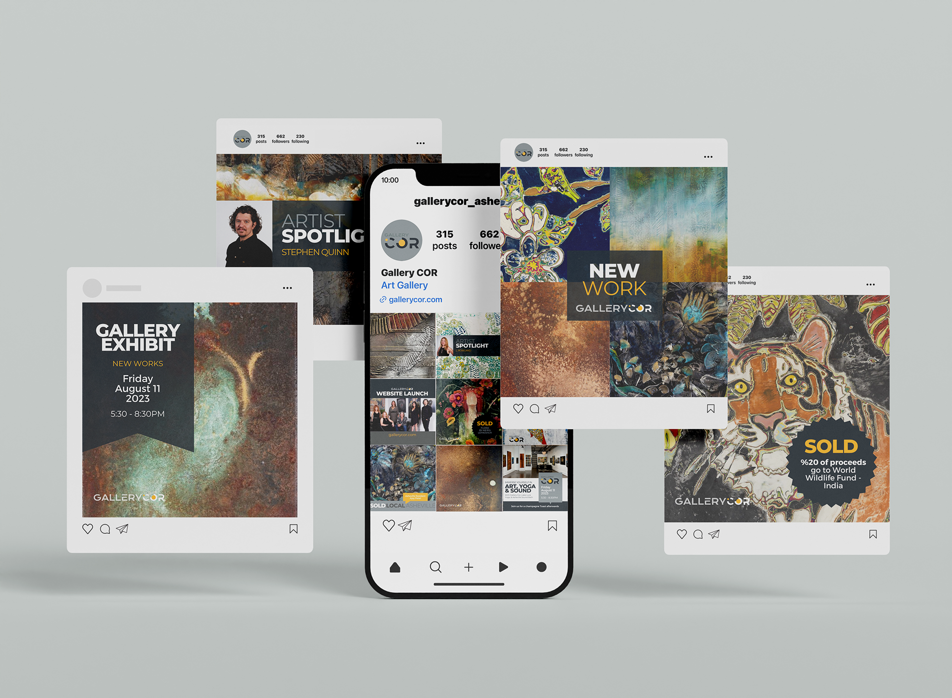 Branding package for gallery COR. Included logo design, social media, signage and website.