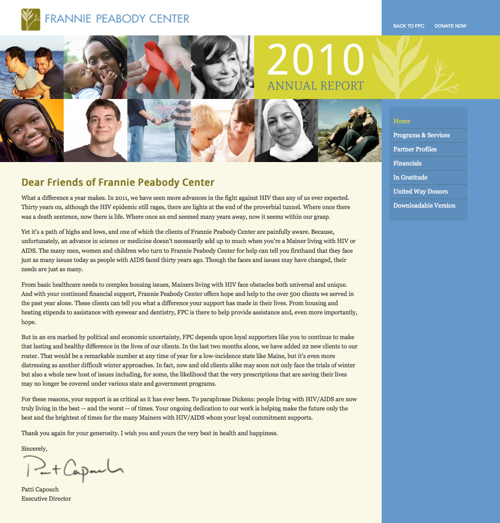 Web Design and online annual report for Frannie Peabody Center.