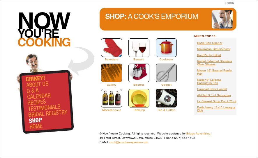 Design of e-commerce website for kitchen supply store. Design of logo as well.