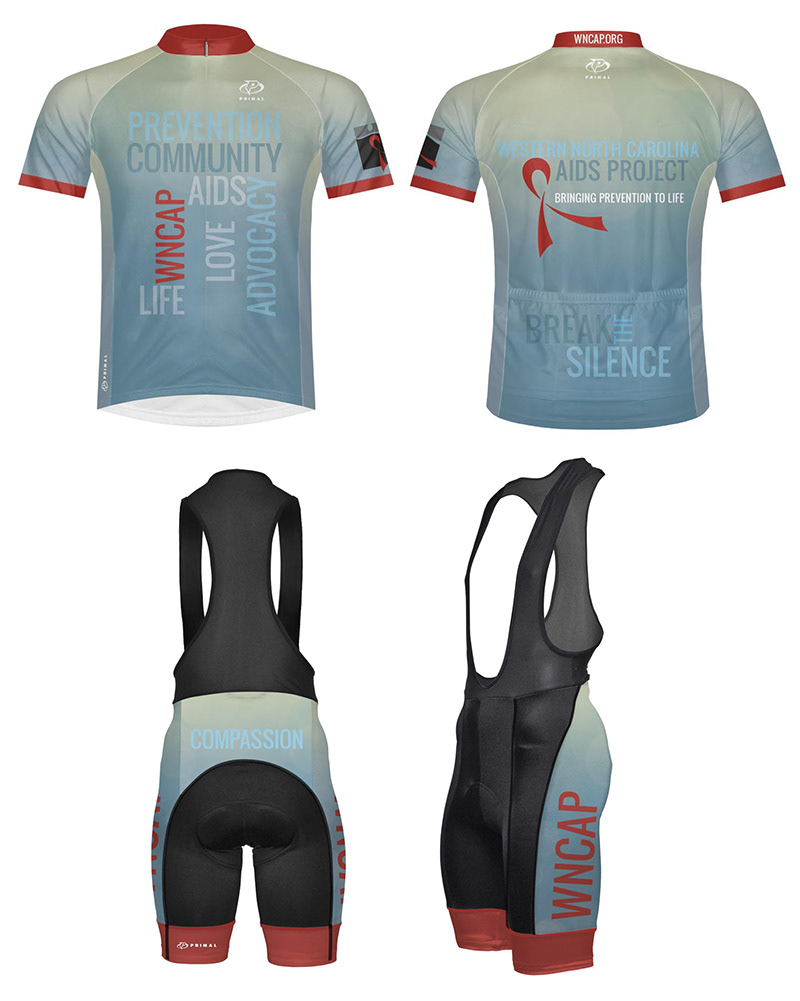Design of cycling jersey and bib for Western North Carolina Aids Project.